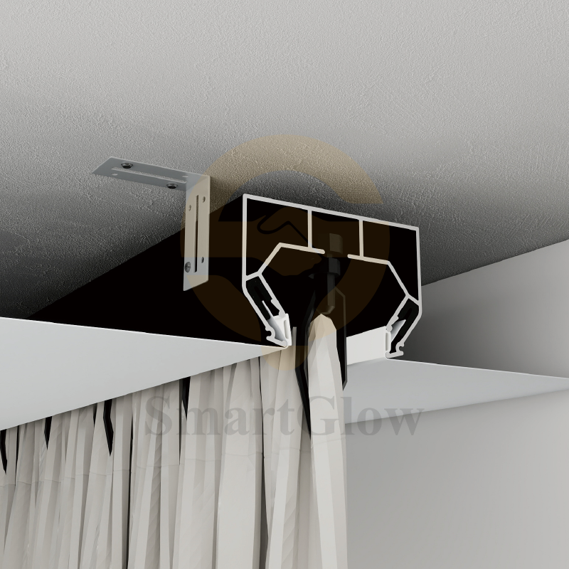 SmartGlow's new SGC01 concealed curtain aluminum profile for stretching ceilings can create curtain grooves up to 29mm deep. By installing this stretch aluminum ceiling, the hooks can be completely hidden, exposing only the curtains themselves. This is currently the most popular finished product solution, without the need to purchase additional tracks separately. The profile itself comes with a complete curtain operating structure.