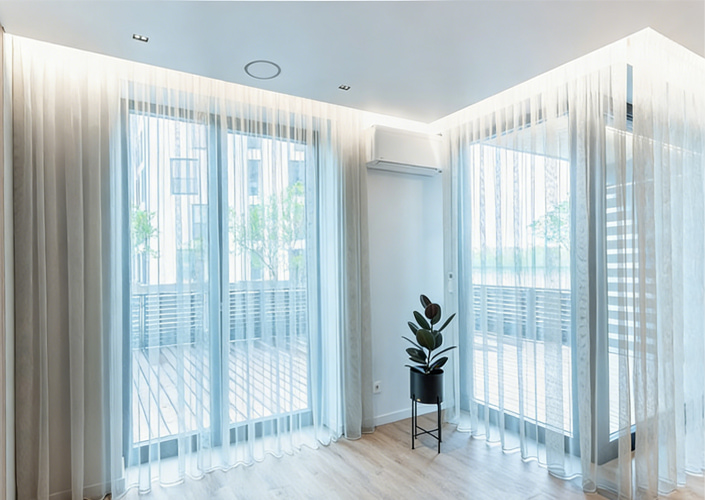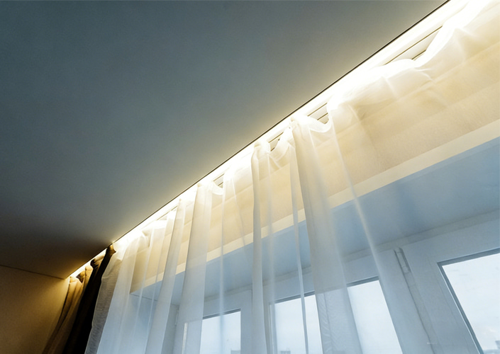 We introduce professional concealed curtain troughs that are compatible with various PVC and fabric stretch ceilings. We provide multiple integrated aluminum profile solutions that can hide tracks and install LED light strips. The installation is convenient, beautiful, and tidy, perfectly enhancing the texture and user experience of home decoration spaces.