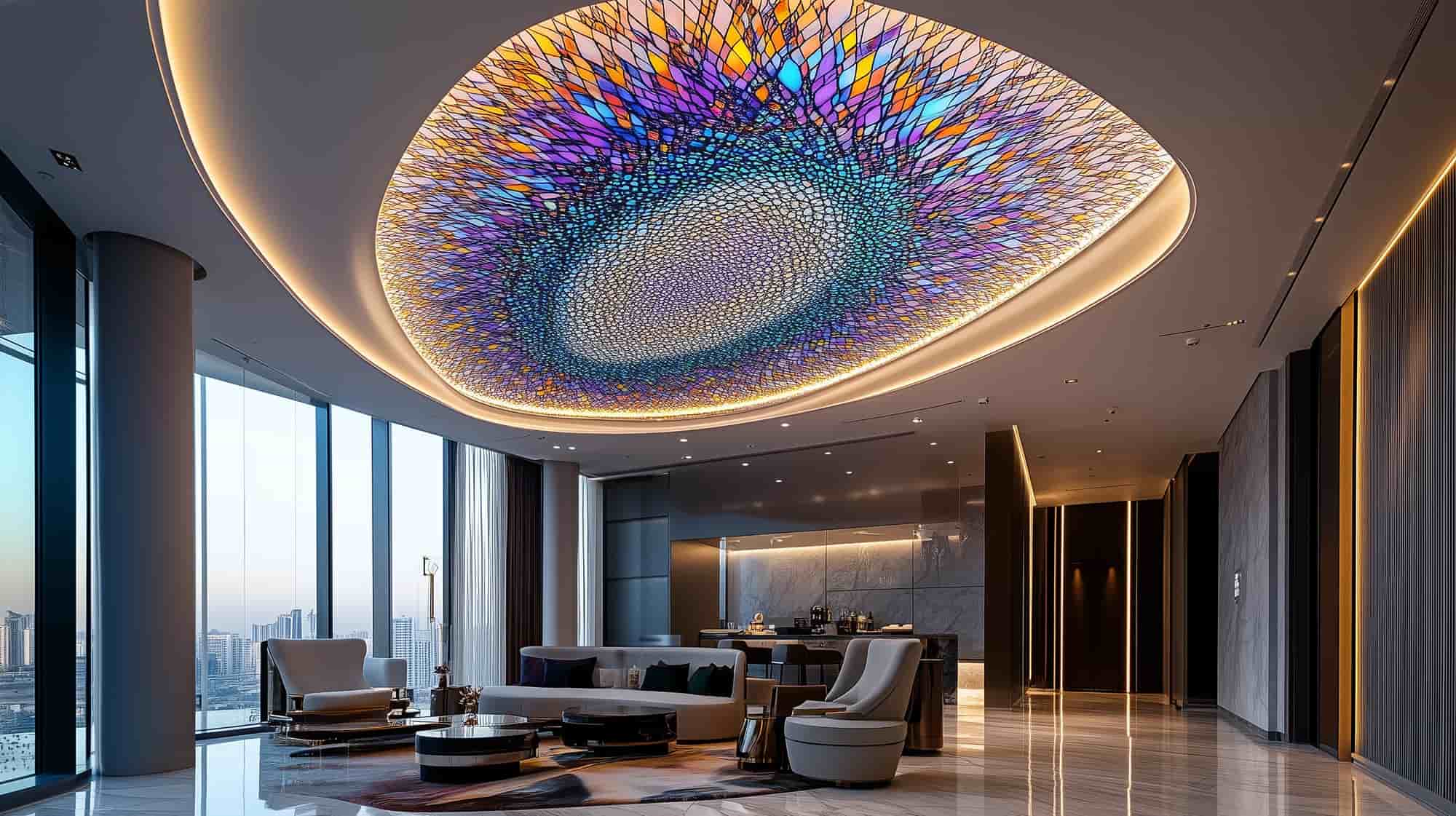 We have developed an exclusive PVC film stretch ceiling solution for business scenarios that prioritize cleanliness, efficiency, tranquility, and professionalism, such as office spaces and exhibition halls. The product is made of high-quality and environmentally friendly PVC film material, which has the characteristics of dust and moisture resistance, flatness and durability, and easy cleaning and maintenance. It perfectly adapts to the high standards of space cleanliness and visual texture required by offices and exhibition halls.