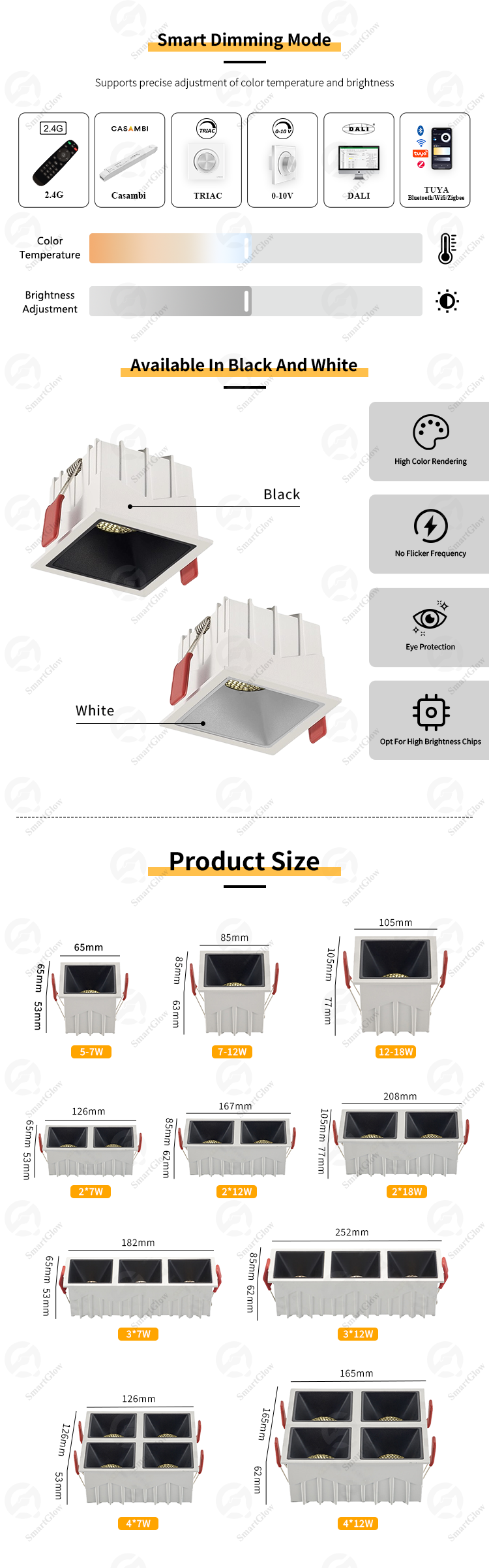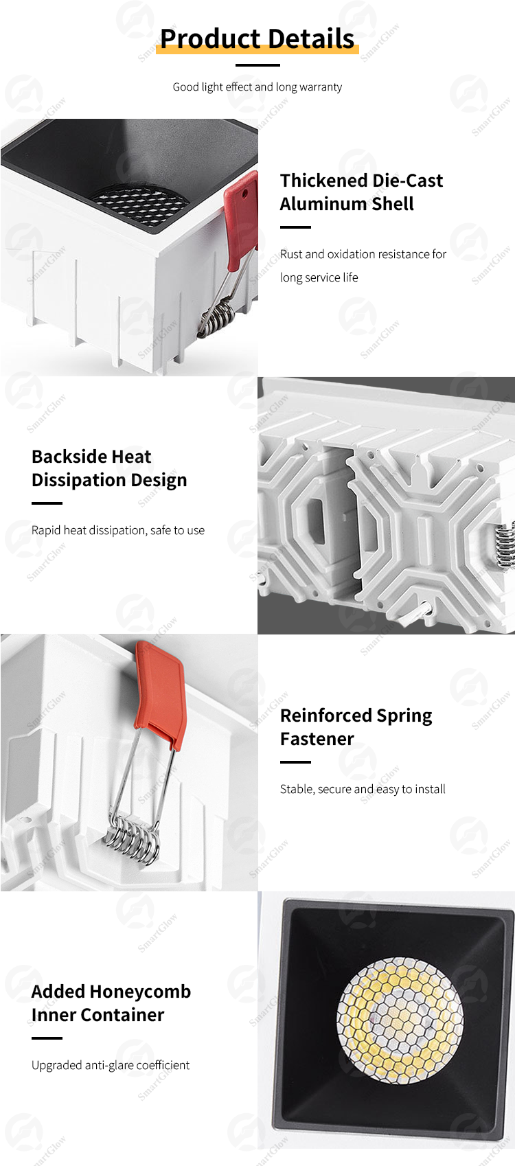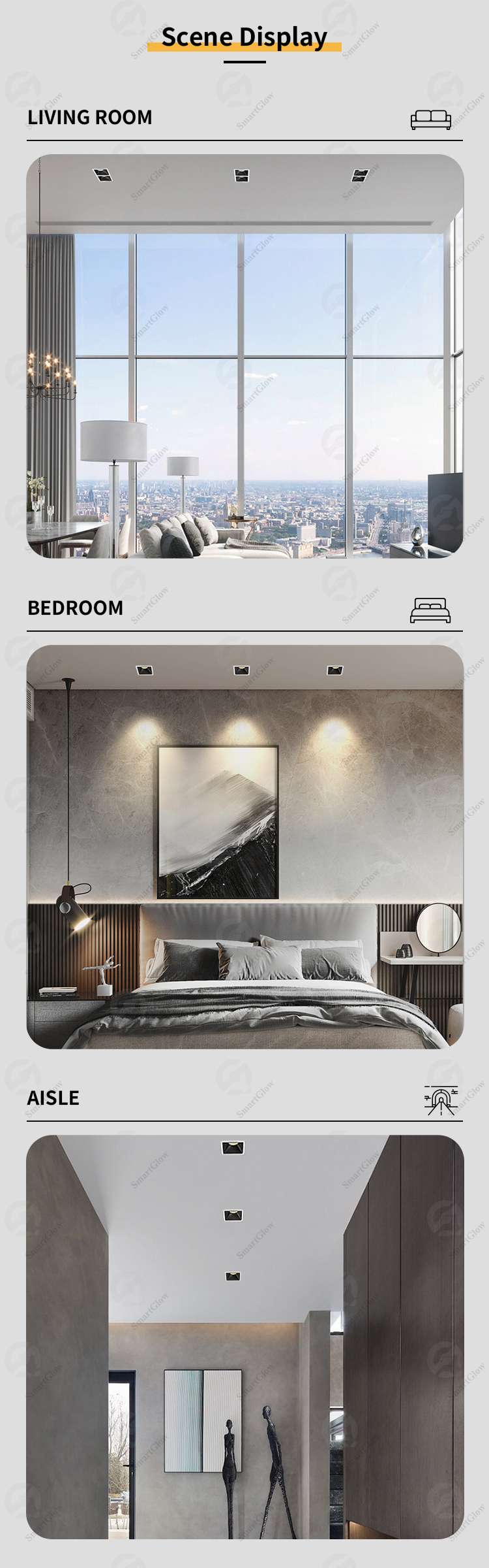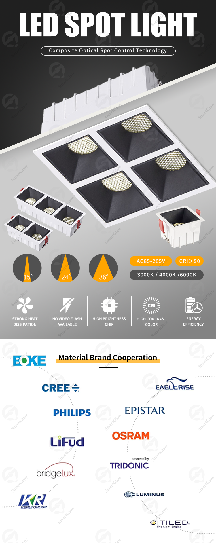 【SG813】4Led Can Black Recessed Square Spotlight Best Cob Trimless Concealed Shallow Spotlight