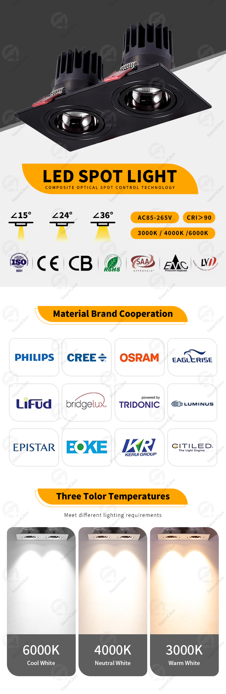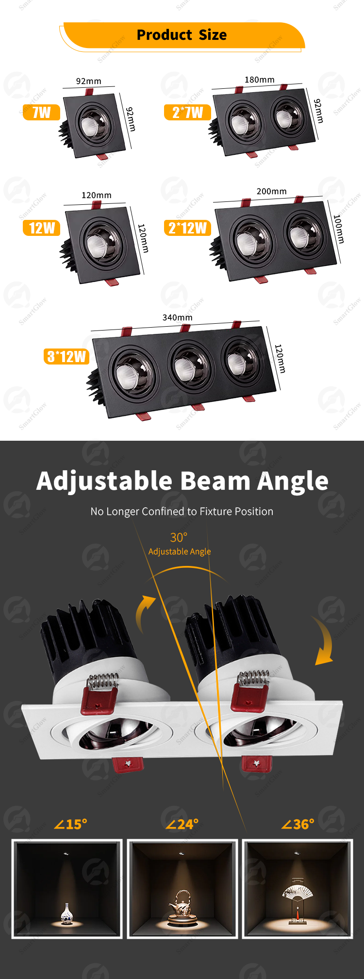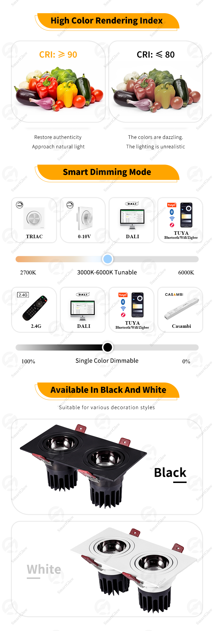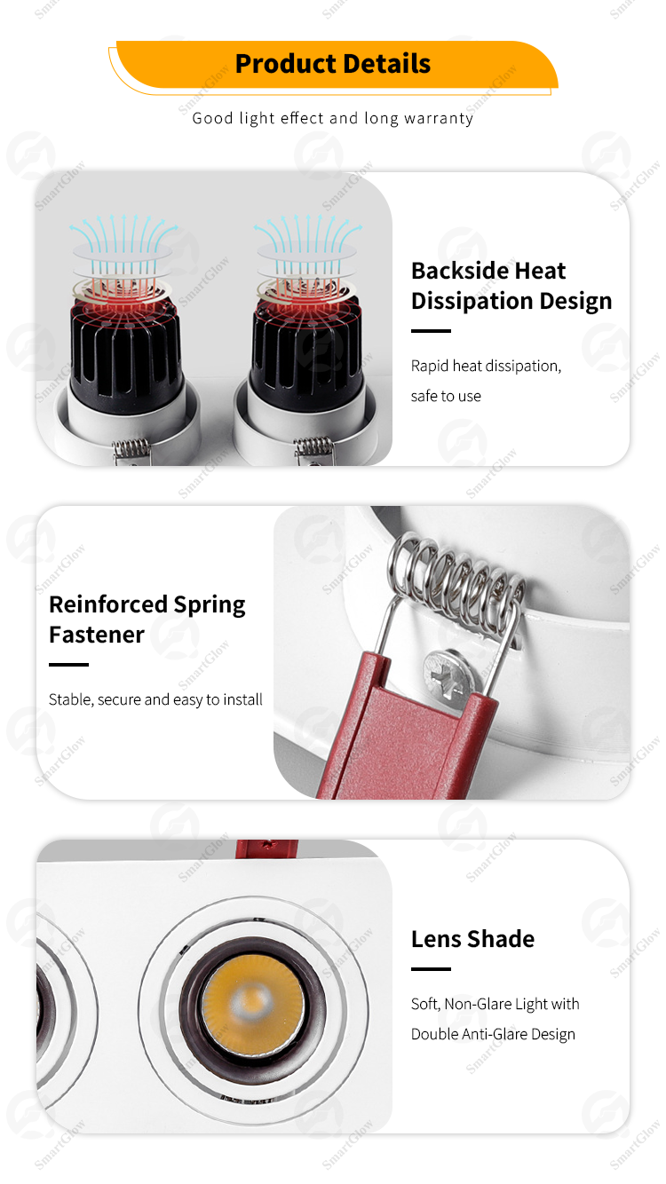 【SG817】7W Sunken Swivel Led Cob Spotlight Smart Control Dimmable Double Recessed Ceiling Spotlight