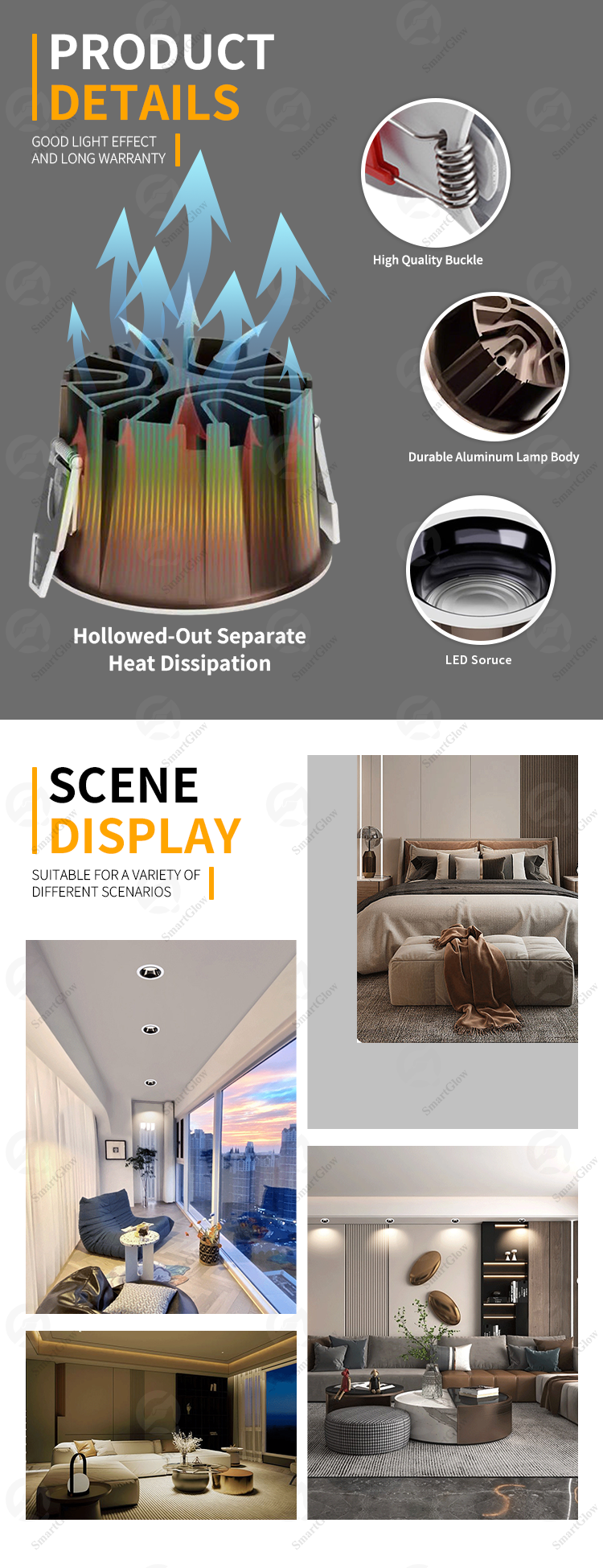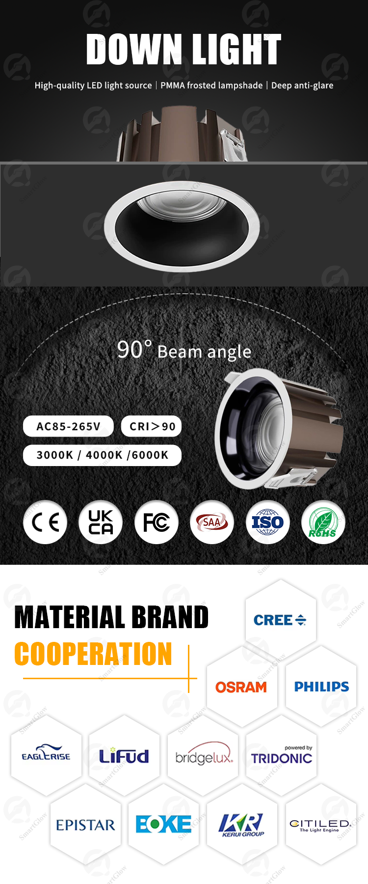 This embedded LED lighting fixture features a lightweight aluminum casing. Its optical design, including embedded light sources and reflectors, can minimize glare to the greatest extent possible without significantly reducing light output. This luminaire has an IP65 optical protection rating, making it suitable for general lighting in high humidity environments. Product Features: Connect to the intelligent control system, supporting Tuya, WiFi, Bluetooth Zigbee Aluminum radiator enhances reliability Shining low glare multi-faceted lens The latest generation of COB LED chips - Osram, Cree, Bridgelux 5-year warranty.