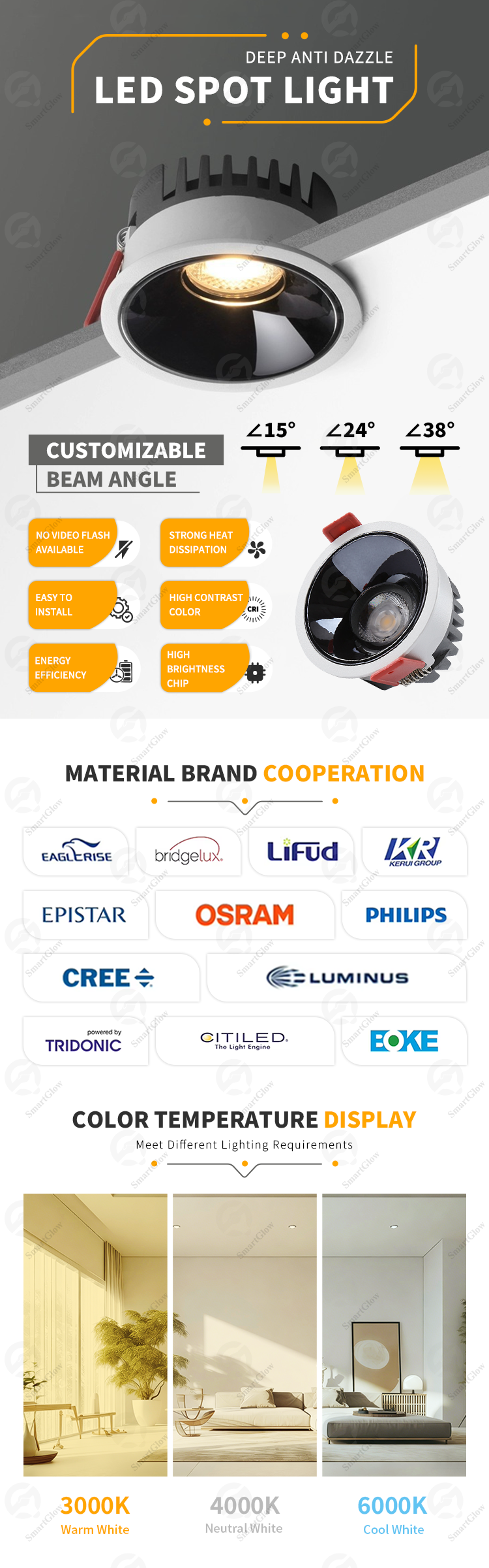 【SG834】Best Adjustable Commercial ip65 Led Cob Downlight Smart Dimmable Remote Control Downlight
